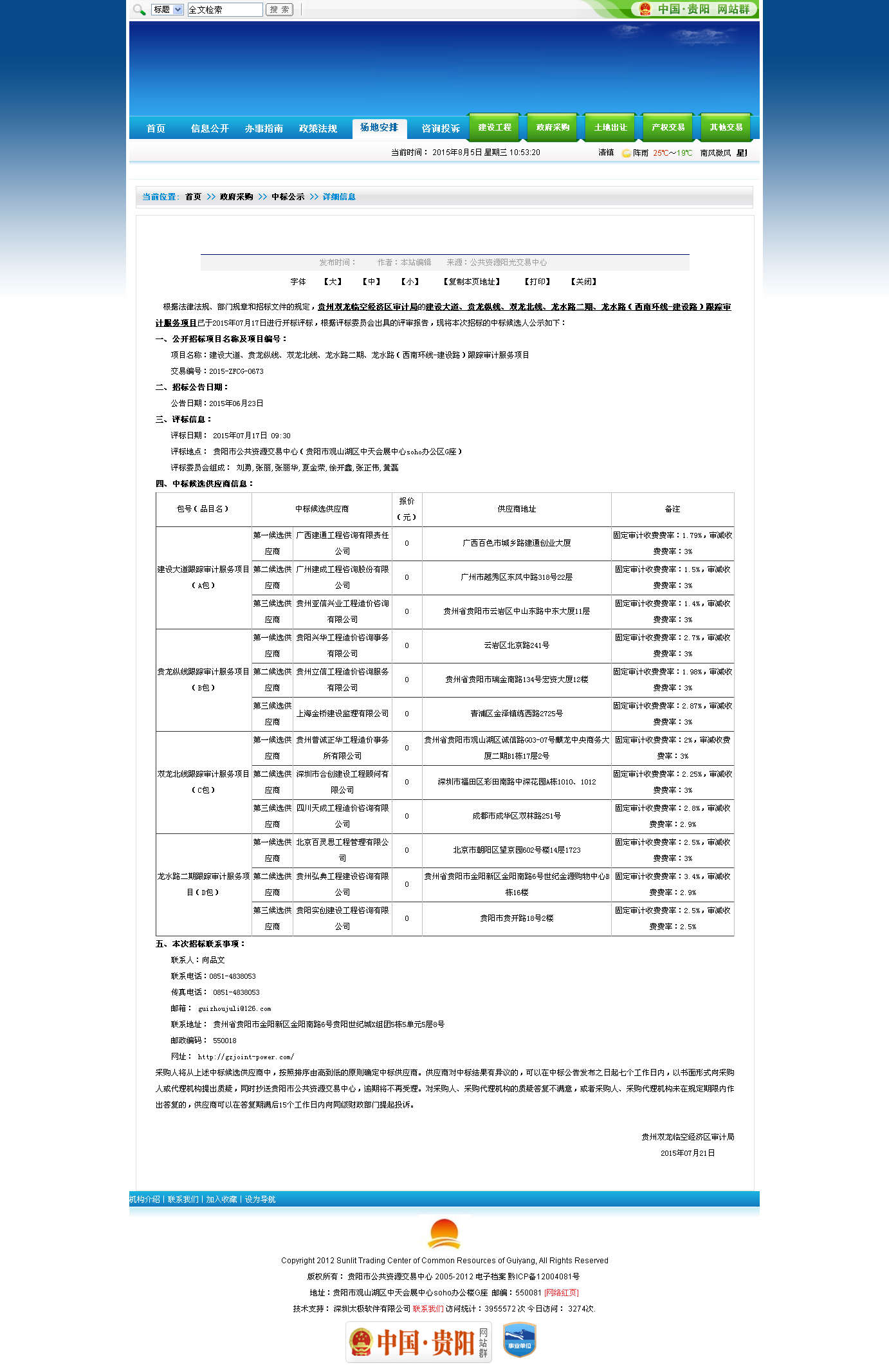 我集團工程咨詢公司貴陽分公司在貴州雙龍臨空經濟區(qū)審計局“建設大道跟蹤審計服務項目”(項目投資規(guī)模:33億元)招標采購中成功中標!