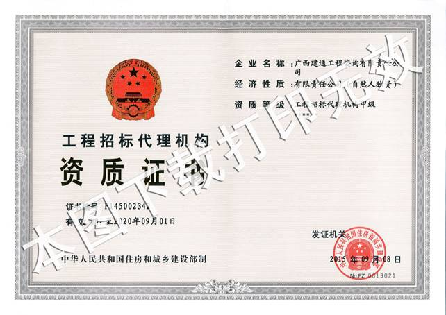 在集團(tuán)、公司領(lǐng)導(dǎo)的關(guān)心、支持以及品牌公司資質(zhì)申報(bào)全體人員的共同努力下,我集團(tuán)旗下子公司廣西建通工程咨詢有限責(zé)任公司于2015年9月8日成功取得由中華人民共和國(guó)住房和城鄉(xiāng)建設(shè)部頒發(fā)的工程招標(biāo)代理機(jī)構(gòu)甲級(jí)資質(zhì)證書延續(xù)。廣西建通工程咨詢有限責(zé)任公司擁有一支技術(shù)能力強(qiáng)、專業(yè)程度高的招標(biāo)代理人才隊(duì)伍,致力于為業(yè)主提供優(yōu)質(zhì)的招標(biāo)代理服務(wù),公司的招標(biāo)業(yè)務(wù)涉及房建、市政、橋梁、水利、公路等多個(gè)領(lǐng)域,囊括土木工程、建筑工程、線路管道和設(shè)備安裝工程及裝飾裝修工程的勘察、設(shè)計(jì)、施工、監(jiān)理以及與工程建設(shè)有關(guān)的重要設(shè)備、材料采購(gòu)招標(biāo)的代理業(yè)務(wù),此次工程招標(biāo)代理甲級(jí)資質(zhì)延續(xù)的取得為公司招標(biāo)代理業(yè)務(wù)的拓展提供了更廣闊的空間,為公司從區(qū)域公司轉(zhuǎn)型為全國(guó)性公司奠定了堅(jiān)實(shí)的基礎(chǔ)。公司將珍惜榮譽(yù),為實(shí)現(xiàn)集團(tuán)全國(guó)品牌發(fā)展戰(zhàn)略保駕護(hù)航!