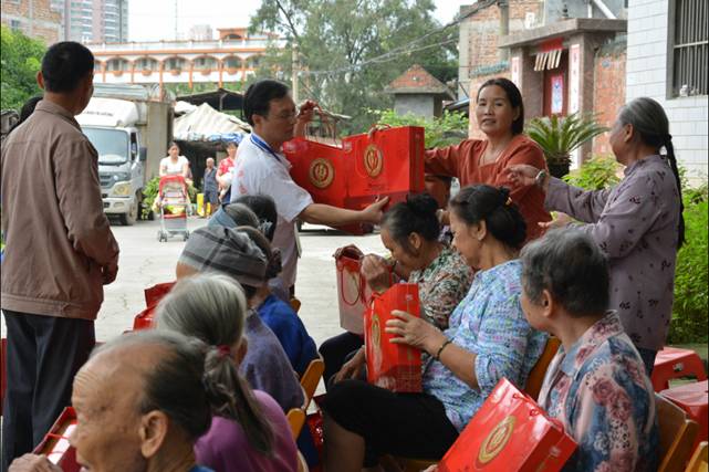 圖二:集團(tuán)副總裁羅杰親手給老人們送上月餅