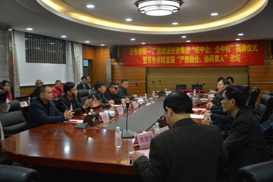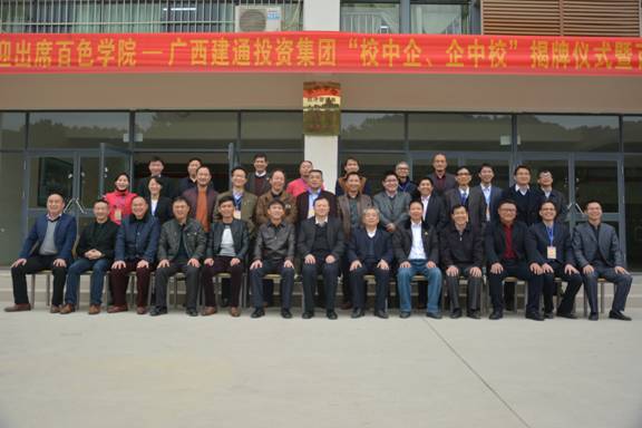 根據(jù)國家“校企合作協(xié)同育人”的號召,按照“應(yīng)用型大學(xué)”的范式合作辦學(xué),全面深化校企合作,構(gòu)建產(chǎn)教結(jié)合共同體。2015年10月27日百色學(xué)院與我集團(tuán)達(dá)成校企合作、協(xié)同育人的戰(zhàn)略合作意向,經(jīng)過雙方高層數(shù)次磋商,于2015年12月16日早在景色秀美的百色學(xué)院澄碧校區(qū)東區(qū)舉辦了百色學(xué)院-廣西建通投資集團(tuán)“校中企、企中校”揭牌儀式暨首屆“產(chǎn)教融合、協(xié)同育人”論壇活動(dòng)。應(yīng)邀出席本次儀式活動(dòng)的主要領(lǐng)導(dǎo)及嘉賓分別有:廣西建通投資集團(tuán)鄧安杰董事長、羅 程常務(wù)副董事長、黃樹威副董事長、羅 杰副總裁、黃承理副總裁等集團(tuán)領(lǐng)導(dǎo)、百色學(xué)院金長義校長、羅志發(fā)副校長、周叮波院長等學(xué)院領(lǐng)導(dǎo)、百色市教育基金會石衛(wèi)武理事長、鐘振發(fā)副理事長等基金會領(lǐng)導(dǎo)、其他企業(yè)、院校的領(lǐng)導(dǎo)和代表。