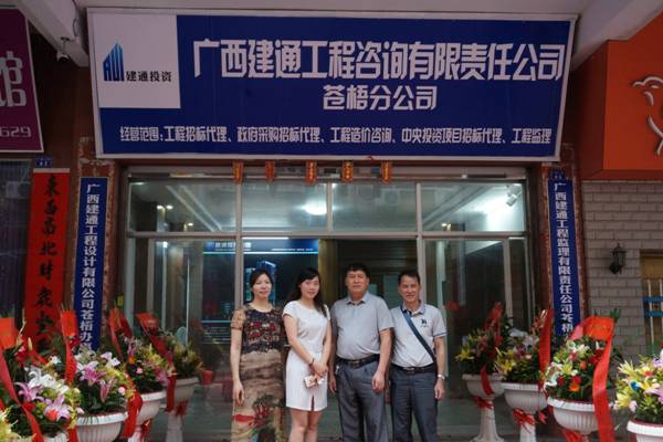 2016年5月9日,在這個(gè)晴空萬里、充滿喜慶的日子里我們迎來了廣西建通工程咨詢有限責(zé)任公司蒼梧分公司的開業(yè)慶典儀式。慶典活動(dòng)現(xiàn)場張燈結(jié)彩、鞭炮齊鳴、掌聲雷動(dòng)。廣西建通工程咨詢有限責(zé)任公司副總經(jīng)理兼廣西建通品牌運(yùn)營有限公司副總經(jīng)理熊莎莎,品牌公司運(yùn)營二所副所長蔣美華作為集團(tuán)代表出席了此次開業(yè)慶典,獻(xiàn)上花籃為慶典儀式致以衷心的祝賀。