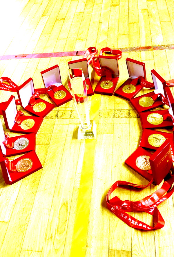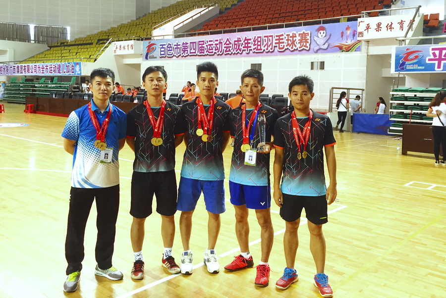 百色市第四屆市運(yùn)會(huì)于5月18日-5月22日在平果縣體育中心揭開戰(zhàn)幕,集團(tuán)派出以集團(tuán)副董事長黃樹威、集團(tuán)總裁助理譚波領(lǐng)銜的7名隊(duì)員參加了為期四天的羽毛球賽,集團(tuán)健兒們沉著應(yīng)戰(zhàn),不畏強(qiáng)手,賽出風(fēng)格,賽出水平,成功衛(wèi)冕含金量最重的男子團(tuán)體冠軍,男雙單項(xiàng)冠軍,并首奪男單冠軍,一共斬獲三金二銅的好成績,集團(tuán)代表團(tuán)成為本屆百色市運(yùn)會(huì)羽毛球項(xiàng)目最大的贏家!