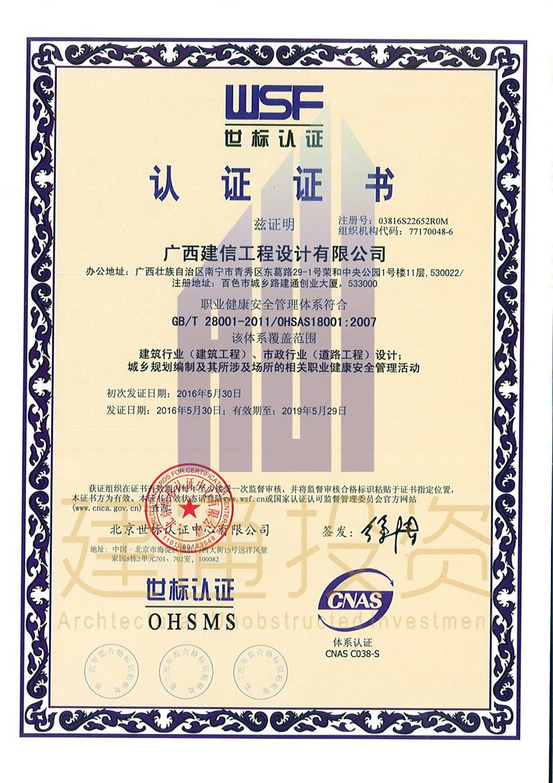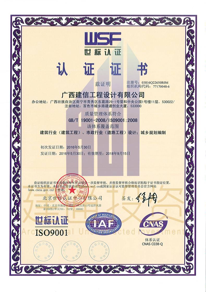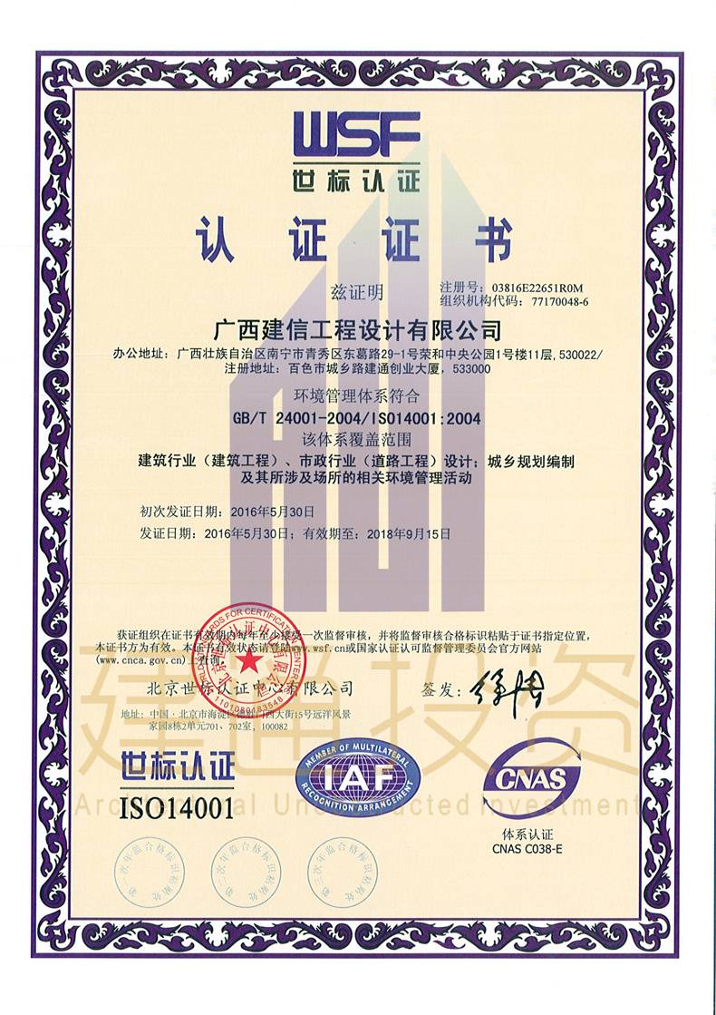廣西建信工程設(shè)計有限公司三大體系認(rèn)證證書