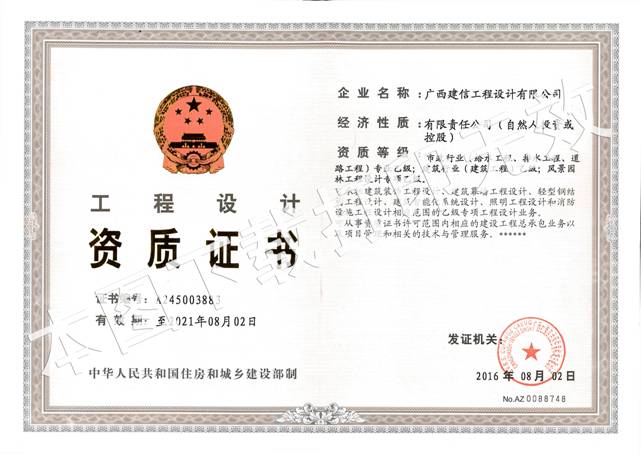 風(fēng)景園林工程設(shè)計(jì)專項(xiàng)乙級(jí)資質(zhì)的取得,不僅拓寬了經(jīng)營領(lǐng)域,也標(biāo)志著廣西建信工程設(shè)計(jì)有限公司的綜合實(shí)力再上新臺(tái)階,并提高了品牌知名度,為進(jìn)一步提升核心競爭力提供了有利條件。