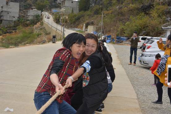 百色總部建通女將正在進(jìn)行激烈的拔河比賽