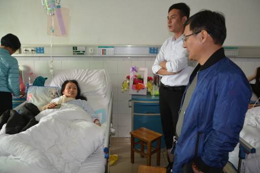 “德建志遠,業(yè)通人和” 是集團的發(fā)展愿景,“建通是我家,發(fā)展為大家” 是集團的核心價值觀。從創(chuàng)業(yè)開始,集團始終堅信:員工是企業(yè)發(fā)展的主體,是企業(yè)存在的核心動力。建通的發(fā)展,離不開集團基層員工的支持;建通的壯大,離不開基層員工的努力。正是有了許許多多員工的不離不棄,建通的今天才如此絢麗多彩!為此,一直以來,集團都秉持著以人為本的理念,以負責任、守承諾的態(tài)度對待每一位員工,讓他們真真切切地感受到集團大家庭的溫暖,盡而最大限度地發(fā)揮自身潛在能力,為企業(yè)創(chuàng)新發(fā)展作出自己的貢獻。集團財務管理中心副經理王素革是集團一位老員工,自2009年10月到集團財務部工作以來,她懷著對集團公司財務事業(yè)的滿腔熱情,數(shù)年如一日,兢兢業(yè)業(yè),勤奮工作,一步一個腳印,在平凡的崗位上做出了不平凡的成績,從2010年至2016年,她連續(xù)7年被評為優(yōu)秀員工和優(yōu)秀中層。然而,天有不測風云!2017年3月16日,在王素革騎電動車上班途中,一位老人在非人行橫道區(qū)域突然橫穿馬路,為了做出避讓,王素革緊急剎車,導致車輛失控側翻,造成她自身右邊鎖骨斷裂性骨折。得知此事后,集團董事長鄧安杰、集團常務副董事長羅程多次電話過問傷情,叮囑她安心養(yǎng)傷,同時委托集團副董事長黃樹威、集團副總裁羅杰代表集團領導員工前往醫(yī)院探望,送上關懷祝福,于是出現(xiàn)了上述感人肺腑的話語和場面。