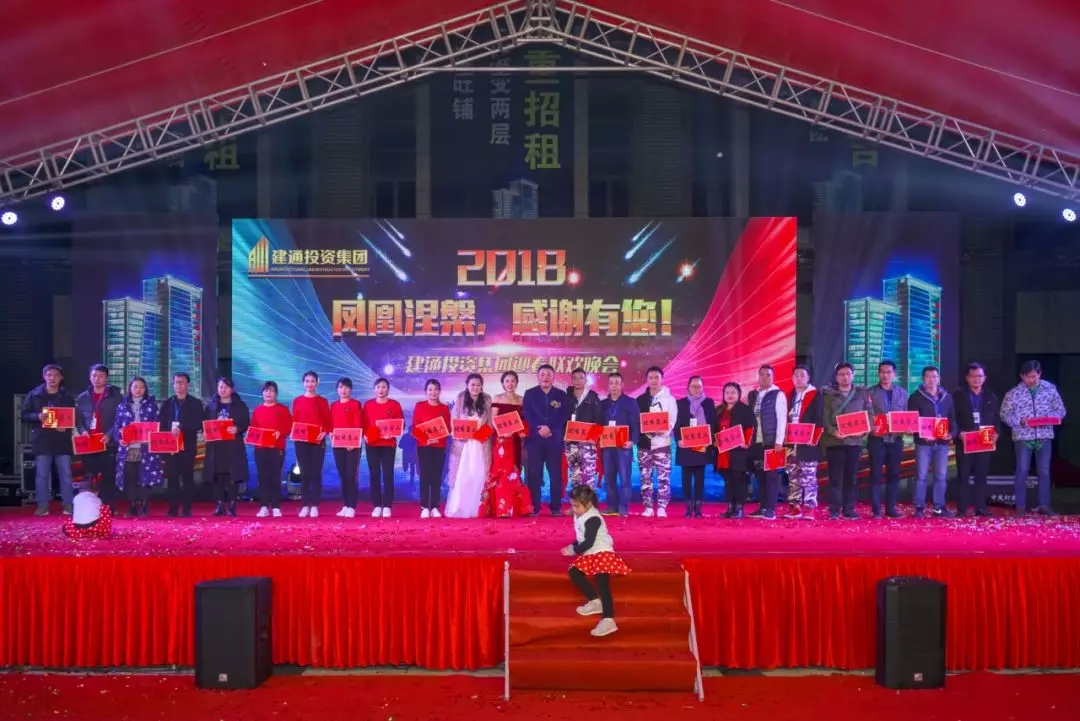 2018年02月10日下午17時(shí),建通中心2號(hào)樓廣場(chǎng),華燈璀璨,流光溢彩!在那里,建通投資集團(tuán)正以“鳳凰涅槃,感謝有您”為主題,隆重舉行2018年迎新春盛大慶典活動(dòng)。