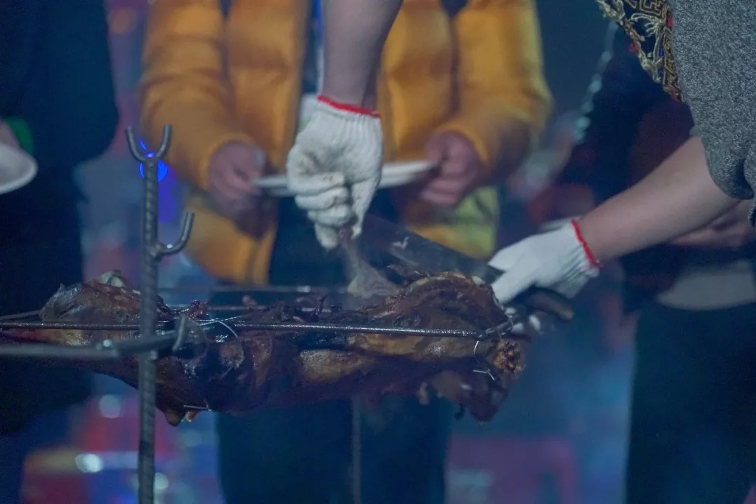 烤了一下午的10只全羊也閃亮登場(chǎng),早已對(duì)它們垂涎三尺的同志,拿著碗盤排著隊(duì)等待師傅切分那香噴噴、美滋滋的烤羊肉,配上啤酒就是大快朵頤,再順帶舀上一碗鮮美的羊肉湯粥回味無窮,放眼一望都是一副食得津津有味的模樣。在品食美味的同時(shí)大家也不禁感嘆,能與如此心系員工的企業(yè)同行,溫暖深潤心田。