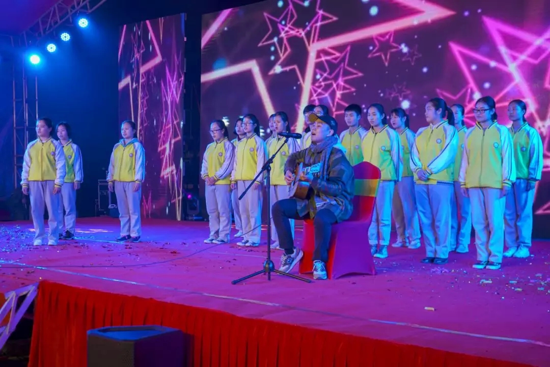 集團(tuán)董事長鄧安杰及集團(tuán)副總裁李瑜、蘇勇、李正琦、崔巨雄為建通助學(xué)班學(xué)生們送上新春祝福吉他彈唱《成都》惟妙惟肖,如同多情的游子,展示著集團(tuán)熱愛老區(qū)、扎根紅土的思想境界。