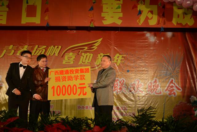 青春揚(yáng)帆,喜迎新年!2014年12月28日晚廣西建通投資集團(tuán)受百色市第五中學(xué)的邀請(qǐng)參加了“百色市第五中學(xué)2015年元旦警民迎新聯(lián)歡晚會(huì)”,集團(tuán)黃承理副總裁、集團(tuán)綜合一部覃艷妙經(jīng)理應(yīng)邀出席了此次晚會(huì)。