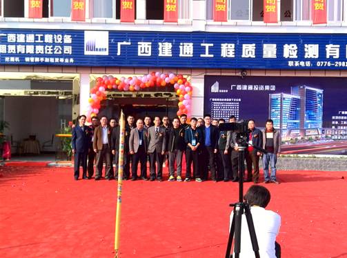 2015年1月17日下午,陽光明媚,微風和煦。在百色市龍景區(qū)龍旺路新開發(fā)的榮新機械城工程機械市場,集團檢測公司、設(shè)備租賃公司入駐的一幢兩層樓房,修葺一新。大門前廣場鮮花錦簇,彩旗招展,人頭攢動,鼓樂喧天。眾多嘉賓與集團領(lǐng)導及集團員工一道,在鮮艷的紅地毯兩旁翹首期盼。15時58分,現(xiàn)場鞭炮齊鳴,掌聲雷動,廣西建通工程質(zhì)量檢測有限責任公司、廣西建通工程設(shè)備租賃有限責任公司開業(yè)揭牌儀式隆重舉行!