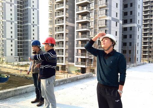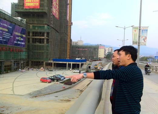 參觀結(jié)束后,開業(yè)儀式告一段落。鄧董事長心系建通·時代廣場項目的建設(shè),在集團副總裁黃承理,房地產(chǎn)及營銷策劃部工作人員的陪同下,鄧董事長首先對與建通時代廣場接壤的市政府重點工程濱江大道的建設(shè)情況進行了實地查看。截至發(fā)稿時止,濱江大道已鋪設(shè)完碎石基礎(chǔ),即將鋪設(shè)水穩(wěn)層。當鄧董事長得知春節(jié)前濱江大道可完成瀝青路面鋪設(shè)后,十分高興的指出:“濱江大道的建設(shè)是迎龍區(qū)的發(fā)展紐帶和輻射源,它的建設(shè)將奠定迎龍區(qū)核心區(qū)域發(fā)展重心,極大的推動樓盤的商業(yè)價值和品牌價值,與其他項目對比,更加凸顯了我們項目的核心區(qū)位優(yōu)勢、交通優(yōu)勢與配套優(yōu)勢,因此對我們的樓盤具有非常重大的意義!”隨后,鄧董事長來到1#樓廣場前察看外墻裝修及電梯廳裝修情況。截至發(fā)稿時止,1#樓外墻裝修玻璃幕墻骨架已搭設(shè)完畢,正在安裝部分玻璃。鄧董事長走進跟前察看工人安裝玻璃工作,對安裝的進度效果表示滿意,他指出:“按照目標計劃,1#樓將在春節(jié)前外墻要首先裝修完畢,屆時將把廣場的整體效果體現(xiàn)出來,為即將在廣場舉辦的重要活動創(chuàng)造良好的景觀條件。”行程最后,鄧董事長還對時代廣場的其他棟號的建設(shè)情況一一進行了察看,并對下一步的施工作業(yè)的開展作出了重要的部署。